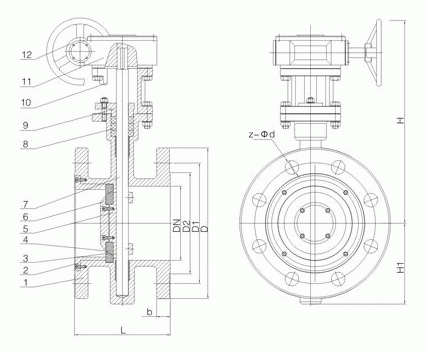 3、密封副間三偏心結構關閉時具有越關越緊的功能,密封更加可靠,達到不泄漏,并且具有雙向密封功能。