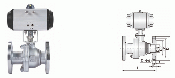 不銹鋼氣動球閥外形結(jié)構(gòu)圖: