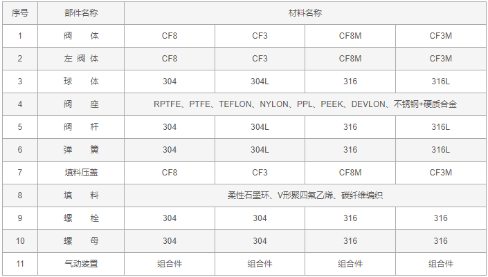 不銹鋼氣動球閥主要零部件全部采用耐酸堿腐蝕性的不銹鋼材料,其球體與閥座密封根據(jù)工況不同,可分別采用軟密封、噴焊鎳基合金(硬度大于HRC60)、超音速涂鎢鈷合金(硬度大于HRC70)及其他特種硬化材料等,以適用于各種苛刻工況,該閥軟密封適宜200℃以下工況,硬密封碳鋼不超過425℃,不銹鋼不超過450℃。