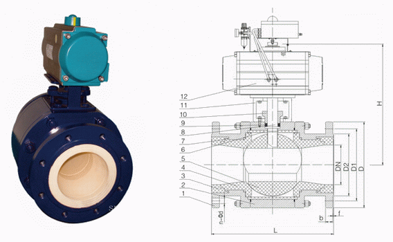 陶瓷氣動球閥外形結(jié)構(gòu)圖: