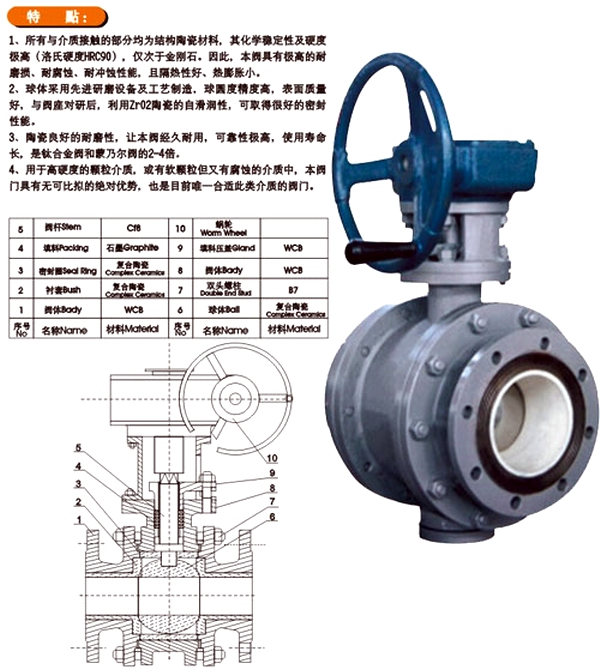 蝸輪陶瓷球閥描述及結(jié)構(gòu)圖: