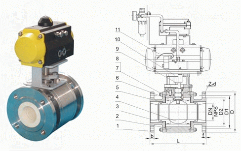 不銹鋼氣動(dòng)陶瓷球閥外形結(jié)構(gòu)圖: