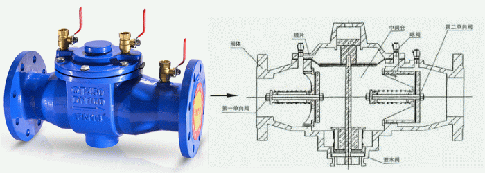 一體式倒流防止器是一種嚴格限定管道中水只能單向流動的水力控制組合裝置。它的功能是在任何工況下防止管道中的介質(zhì)倒流,以達到避免倒流污染的目的。一體式倒流防止器用于防止生活飲用水管道發(fā)生回流污染的安全裝置,防止飲水回流污染新穎閥門,以確保生活飲用水的衛(wèi)生和安全;本產(chǎn)品具有結(jié)構(gòu)合理性、使用方便、密封性能強、堅固耐用及造型美觀等特點。廣泛用于電力、冶金、石油、化工、煤氣、城建、造紙、紡織、醫(yī)藥、食品、船舶、給排水、能源等領域。