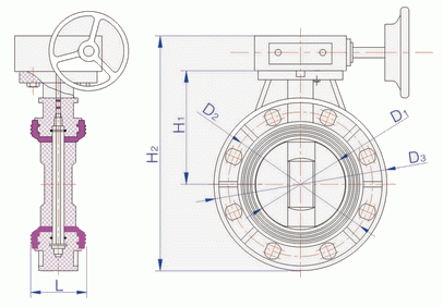 D371X-10S蝸輪式塑料蝶閥外形結(jié)構(gòu)圖: