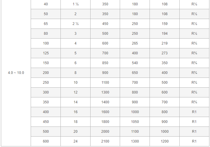 立式直通正濾式過(guò)濾器外形尺寸表: