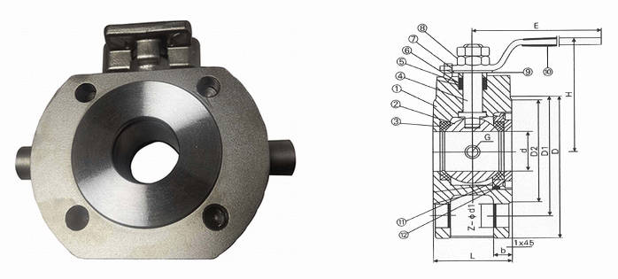 高平臺對夾保溫球閥外形結(jié)構(gòu)圖: