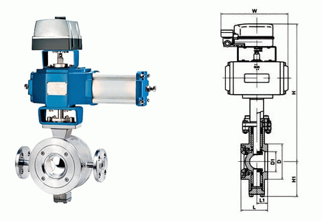 保溫氣動V型球閥外形結(jié)構(gòu)圖: