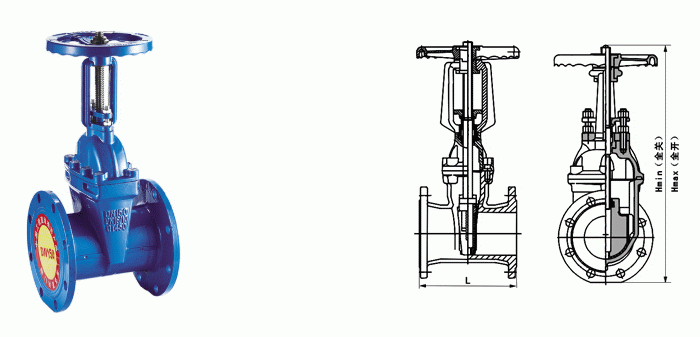 軟密封明桿閘閥外形結(jié)構(gòu)圖: