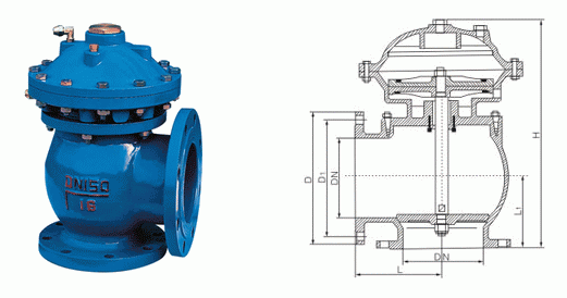 膜片式快開排泥閥又稱隔膜式快開排泥閥,是一種由液壓源或氣動源作執(zhí)行機構(gòu)的角型截斷類閥門通常成排安裝在沉淀池底部外側(cè)壁,用以排除池底沉淀的泥砂和污物。膜片式快開排泥閥由尼龍強化橡膠隔膜將閥門分為兩個腔室,接通液壓或氣動源,采用電動或手動二位四通換向閥控制,實現(xiàn)快速排泥。該閥將隔膜代替活塞無運動摩擦,更適用于泥漿等顆粒介質(zhì),大大提高了閥門的使用壽命。膜片式快開排泥閥產(chǎn)品實物圖: