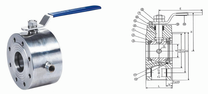 夾套保溫對夾式球閥外形結構圖: