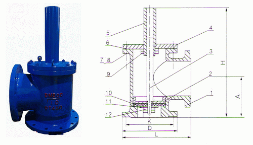 鑄鐵水上式底閥外形結(jié)構(gòu)圖: