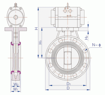 D671X-10S氣動(dòng)塑料蝶閥外形結(jié)構(gòu)圖: