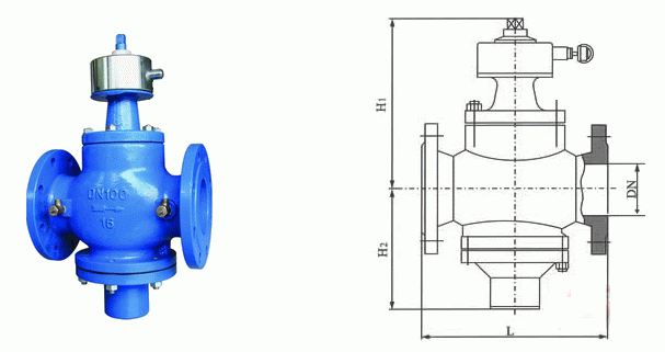 自力式流量控制閥外形結(jié)構(gòu)圖: