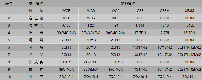 空排止回閥零件材料: