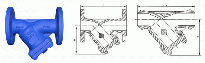 法蘭德標(biāo)Y型過(guò)濾器外形結(jié)構(gòu)圖: