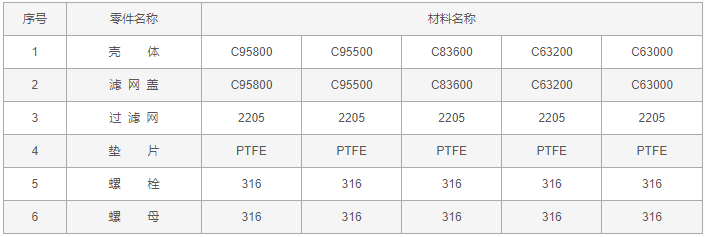 青銅Y型過(guò)濾器零件材料: