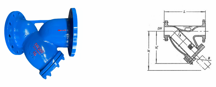 碳鋼Y型過(guò)濾器外形結(jié)構(gòu)圖: