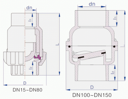 H61F-10S承插式塑料止回閥外形結(jié)構(gòu)圖: