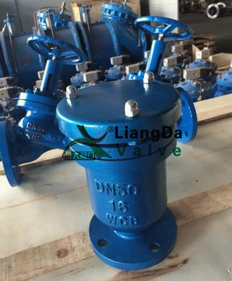 法蘭式單口排氣閥主要由閥體、閥門、上蓋、閥桿、浮球、排氣嘴等組成。當需要排出管道內的氣體時,管道內的空氣在水的壓強作用下進入體腔內,并從排氣嘴排出,隨之管道內的水充滿體腔內,使浮球在水的浮力作用下,向上移動將排氣嘴堵塞,達到自行密封,管道在正常行中,水中的空氣在壓強的作用下,不斷排入排氣閥的體腔上部,迫使浮球下降,離開原來密封位置,這時空氣又從排氣嘴排出,隨之,浮球又恢復到原來位置自密封,因此,排氣閥在正常工作中閥門始終是開著的,浮球不斷重復上述動作,空氣不斷排出。當需要檢修或清掃體腔時,應將閥門關閉。單口排氣閥,順時針旋轉閥桿時為關閉。
