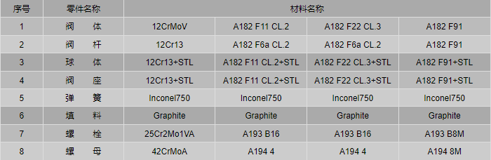 高溫高壓球閥零件材料:
