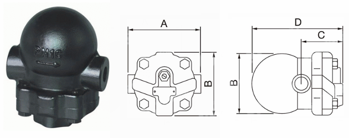 FT14H杠桿浮球式蒸汽疏水閥外形結構圖: