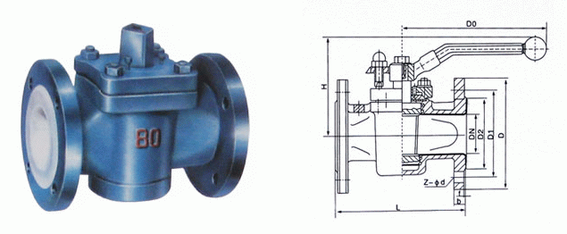 襯氟旋塞閥外形結(jié)構(gòu)圖: