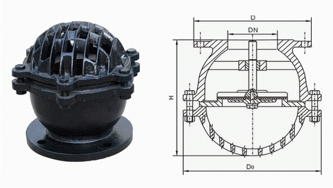 鑄鐵底閥外形結(jié)構(gòu)圖: