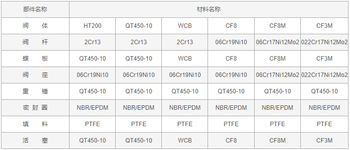 蝶形緩閉止回閥零件材料: