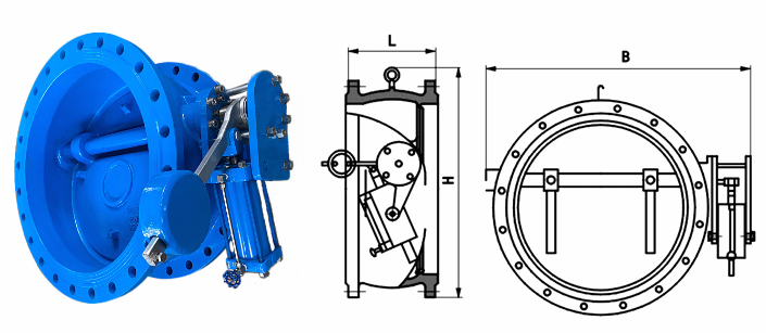 蝶形緩閉止回閥外形結(jié)構(gòu)圖: