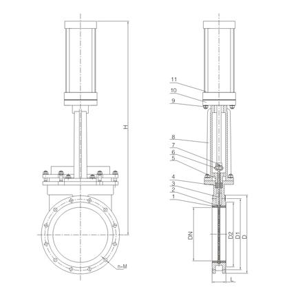 氣動(dòng)陶瓷刀閘閥外形結(jié)構(gòu)圖: