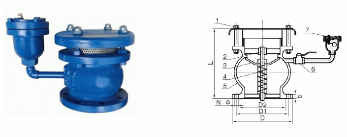 2、當(dāng)管路水流正常流動(dòng)時(shí),水流所釋放出來的微量氣體通過吸氣閥進(jìn)入微量排氣閥的空腔,空腔內(nèi)的氣體逐漸增多,導(dǎo)致閥內(nèi)水位下降,當(dāng)下降到浮球以下位置時(shí),浮球下落,帶動(dòng)杠桿組件打開微量排氣孔口,間歇性地排除聚集在閥體內(nèi)的空氣。
