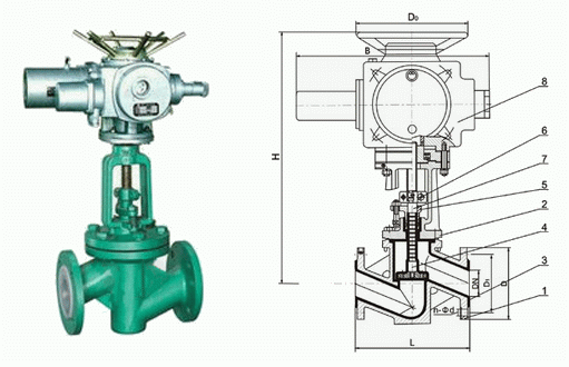 襯氟電動(dòng)截止閥外形結(jié)構(gòu)圖: