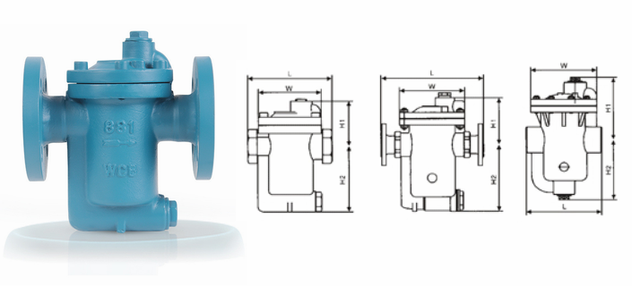 倒置桶式法蘭蒸汽疏水閥外形結構圖: