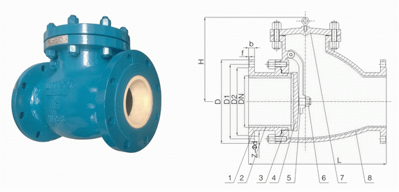 耐磨陶瓷止回閥外形結(jié)構(gòu)圖: