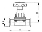 衛(wèi)生級快裝隔膜閥結(jié)構(gòu)尺寸: