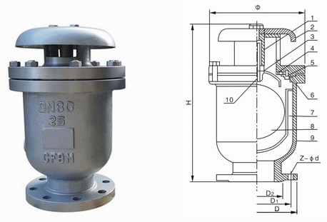 組合式快速進(jìn)排氣閥是一種由閥體、浮球、升降罩、排氣孔密封組件、閥蓋及排氣罩等組成,具有一大一小兩個排氣孔的進(jìn)排氣閥,其當(dāng)管道空管沖水時,在工作壓力下可自動快速排出管道中集結(jié)的空氣:當(dāng)管道內(nèi)產(chǎn)生負(fù)壓時可自動進(jìn)氣,排氣后能夠自動封水。本產(chǎn)品有整體式和分體式兩種,整體式在管內(nèi)正常輸水,浮球上端與閥體間形成壓力氣囊時,浮球能及時靈活下降,在工作壓力下,打開閥門的小孔將壓力氣囊內(nèi)的氣體排凈。
