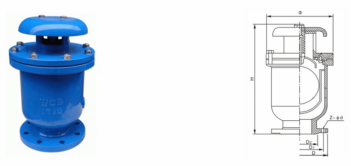 給水管道排氣閥外形結(jié)構(gòu)圖: