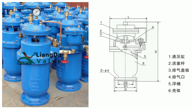 QSP全壓高速排氣閥是根據(jù)氣缸原理制成的不同于其他任何一種進(jìn)排氣閥的全新裝置,其原理是用浮筒杠桿等控制氣缸內(nèi)氣動(dòng)膜片動(dòng)作,從而控制閥體排氣口啟閉。在高壓(1MPa以下)狀態(tài)下,無論是多段水柱、氣柱相間,有壓無壓氣體均可高速排出。