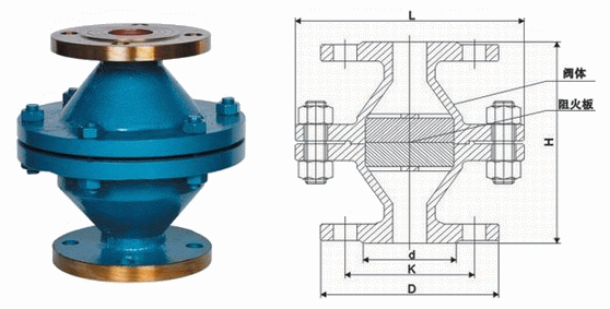 GZW-1型管道阻火器外形結(jié)構(gòu)圖: