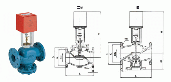電動二通閥外形結(jié)構(gòu)圖:
