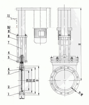 電液動(dòng)陶瓷漿液閥外形結(jié)構(gòu)圖: