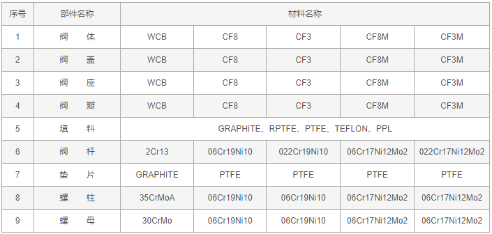 反應(yīng)釜上展式放料閥零件材料: