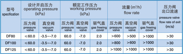 DF-ISO型高速透氣閥主要性能參數(shù):