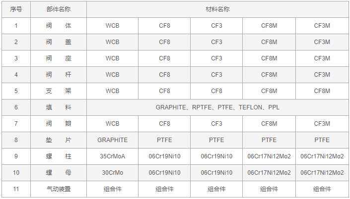 氣動(dòng)帶手動(dòng)放料閥零件材料: