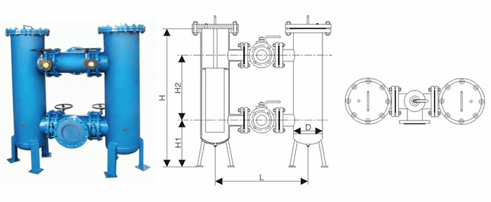雙聯(lián)切換過濾器采用兩個單筒過濾器關聯(lián)組合結(jié)構(gòu),并通過三通球閥進行連接,這樣,需要清洗過濾器時,只要轉(zhuǎn)動三通球閥手柄將需要清洗的單筒過濾器的進水口和出水口斷開,就可單獨清洗該單筒過濾器,而另一個單筒過濾器可正常使用,這樣就保證了工業(yè)管路處于連續(xù)工作狀態(tài)。其亦可單筒使用,只需去掉共同機座,其余尺寸不變。本產(chǎn)品結(jié)構(gòu)新穎合理,操作簡便,密封性好,流通能力強,可以連續(xù)工作且整個切換過程可以實現(xiàn)過濾器前、后無壓差變化。