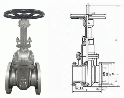 美標明桿閘閥外形結(jié)構(gòu)圖: