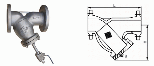 帶排污閥Y型過濾器外形結(jié)構(gòu)圖: