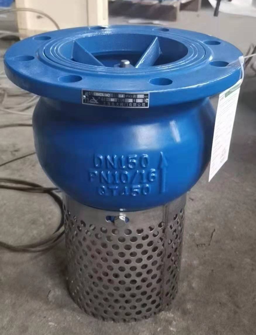 帶過濾網(wǎng)底閥是一種節(jié)約能源的閥,一般安裝在水泵水下吸管的底端限制水泵管內(nèi)液體返回水源,起著只進不出的功能。底閥由閥體,閥瓣,閥蓋,襯套,密封圈等零件組成,在流體的壓力作用下,閥瓣打開水,當示停后出口管內(nèi)的壓力將閥瓣迅速關(guān)閉,液體將不會倒回水源,起到了即暢通抽水又節(jié)約水能損失的作用。