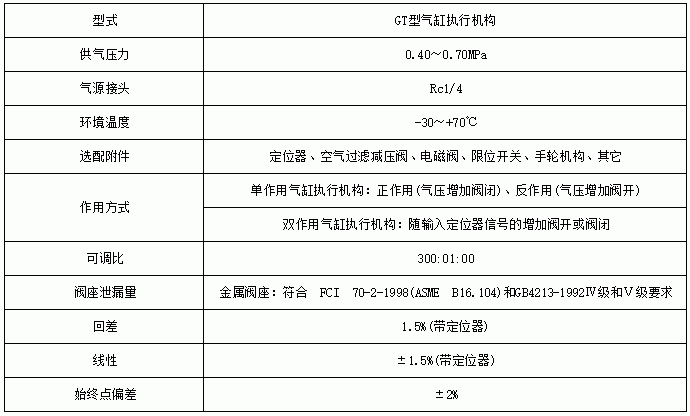 氣動V型切斷執(zhí)行器參數(shù):