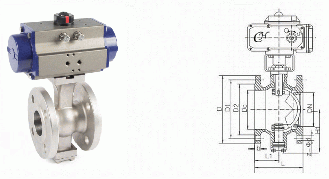 V型氣動球閥外形結(jié)構(gòu)圖: